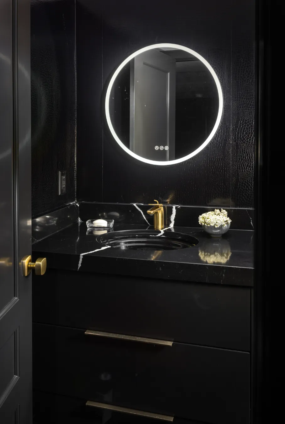 Other features include a steam shower, color-changing LED lights, gloss-finished wainscoting, and phase-changing glass (which goes between clear and opaque at the flip of a switch) between the loft bedroom and the main living space.